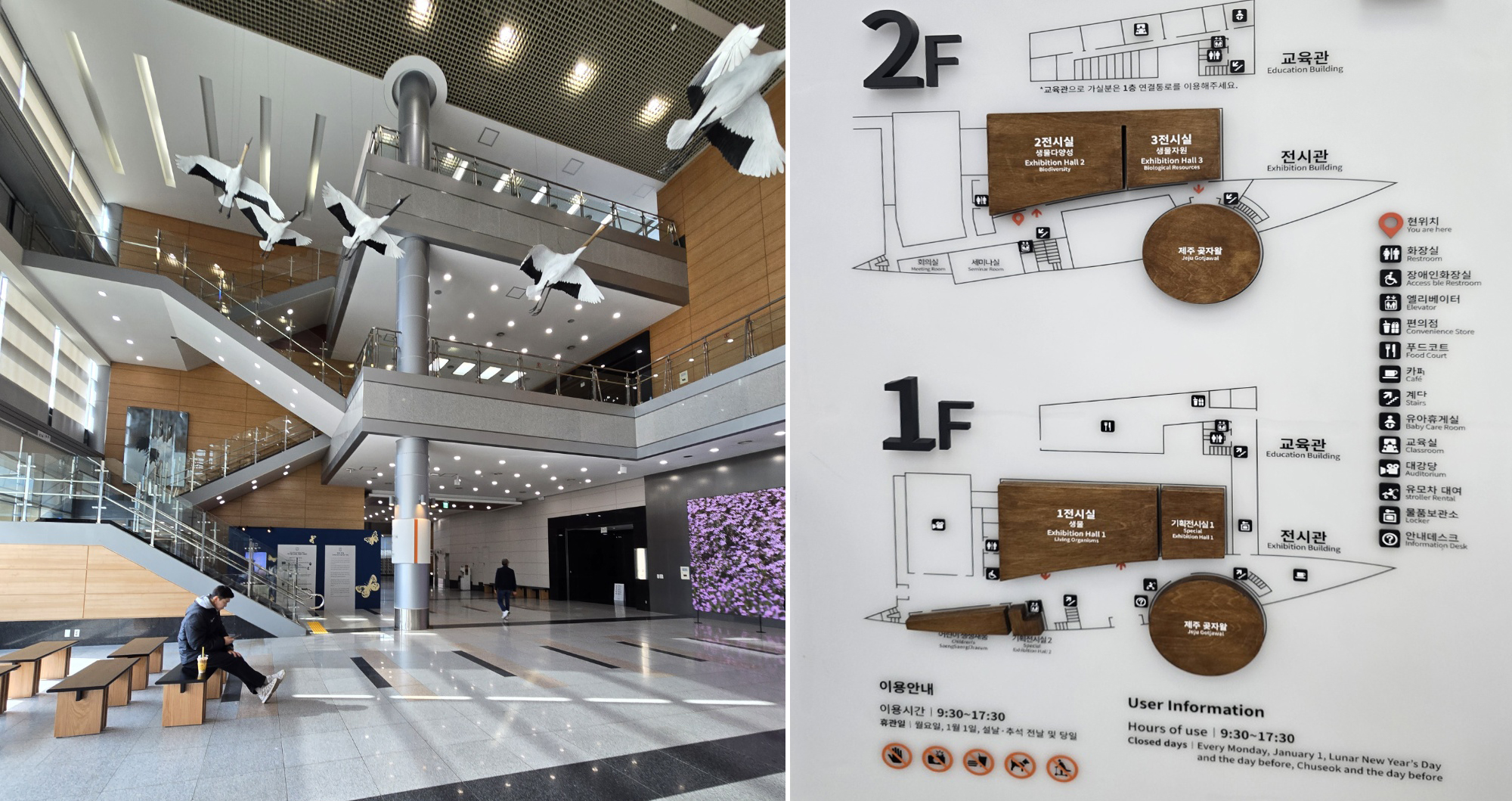 전시관 크기가 정말 큽니다. 1층에 1 전시실, 생생숲놀이터, 새둥지전시실, 컴포즈커피, 식당, 제주곶자왈숲을 옮겨놓은 가든이 있습니다. 곶자왈 숲은 2층 전시까지 보시고 2층에서 내려오는 것을 추천드립니다.