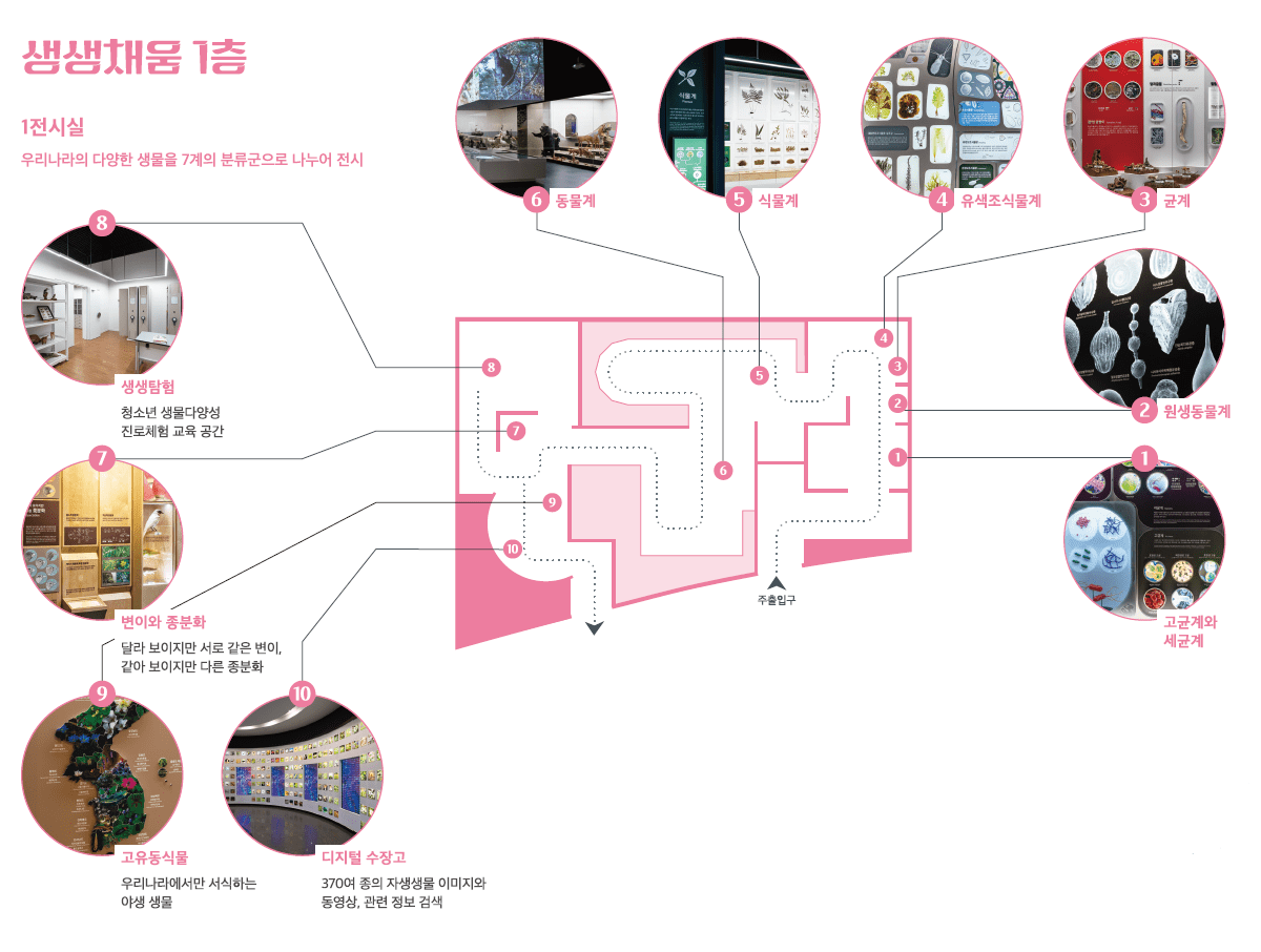 세균계, 원생동물계, 세포부터 곤충, 동물등의 박제가 정말 퀄리티 높은 수준으로 전시가 되어 있습니다. 정말 우리나라에 많은 자원생물을 한눈에 보실 수 있고 아이에게 특별한 경험이 될 겁니다.