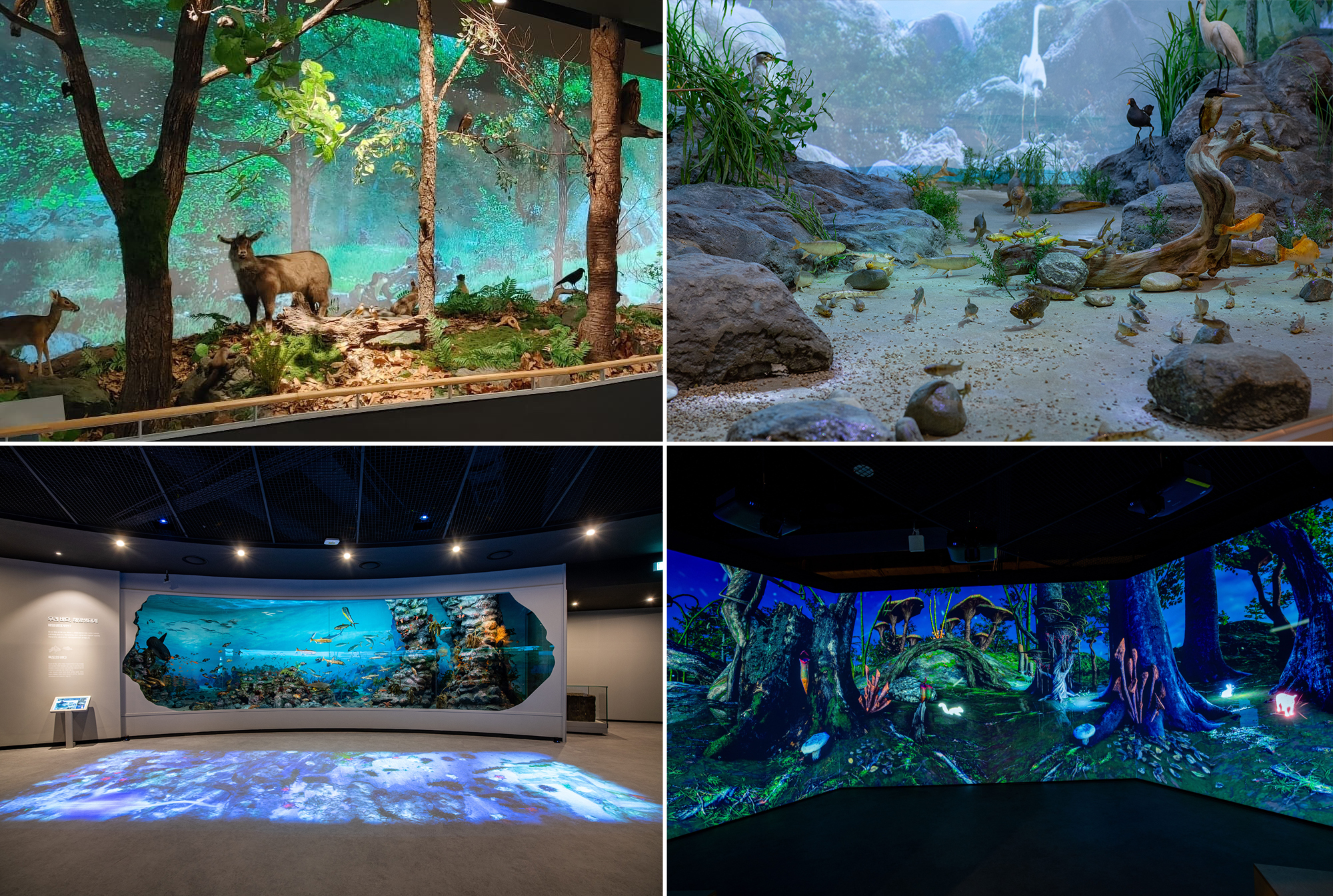 2 전시실은 우리나라의 생물다양성을 재현해 놓은 전시입니다. 욱 상동물 생태계 재현에서 우리나라 상, 중, 하류 하천 생태계재현, 그리고 울릉도와 바닷속 생태계 재현까지 전시되어 있는 공간입니다. 디지털 영상실도 있는데요 여긴 터치 스크린 방식으로 아이들에게 재미를 주는 공간입니다.