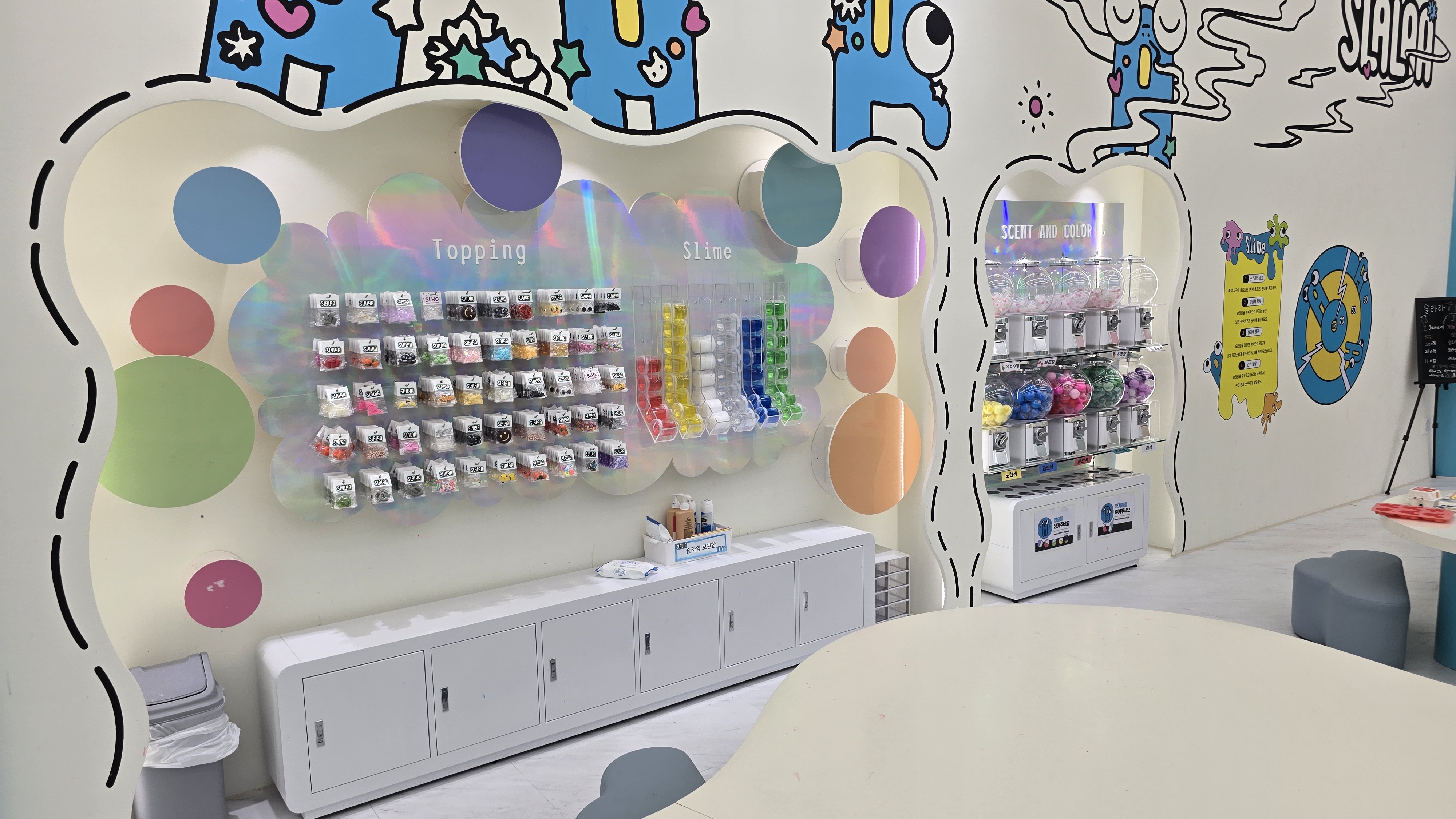슬라임 색상과 토핑을 골라 나만의 슬라임을 만들 수 있습니다.