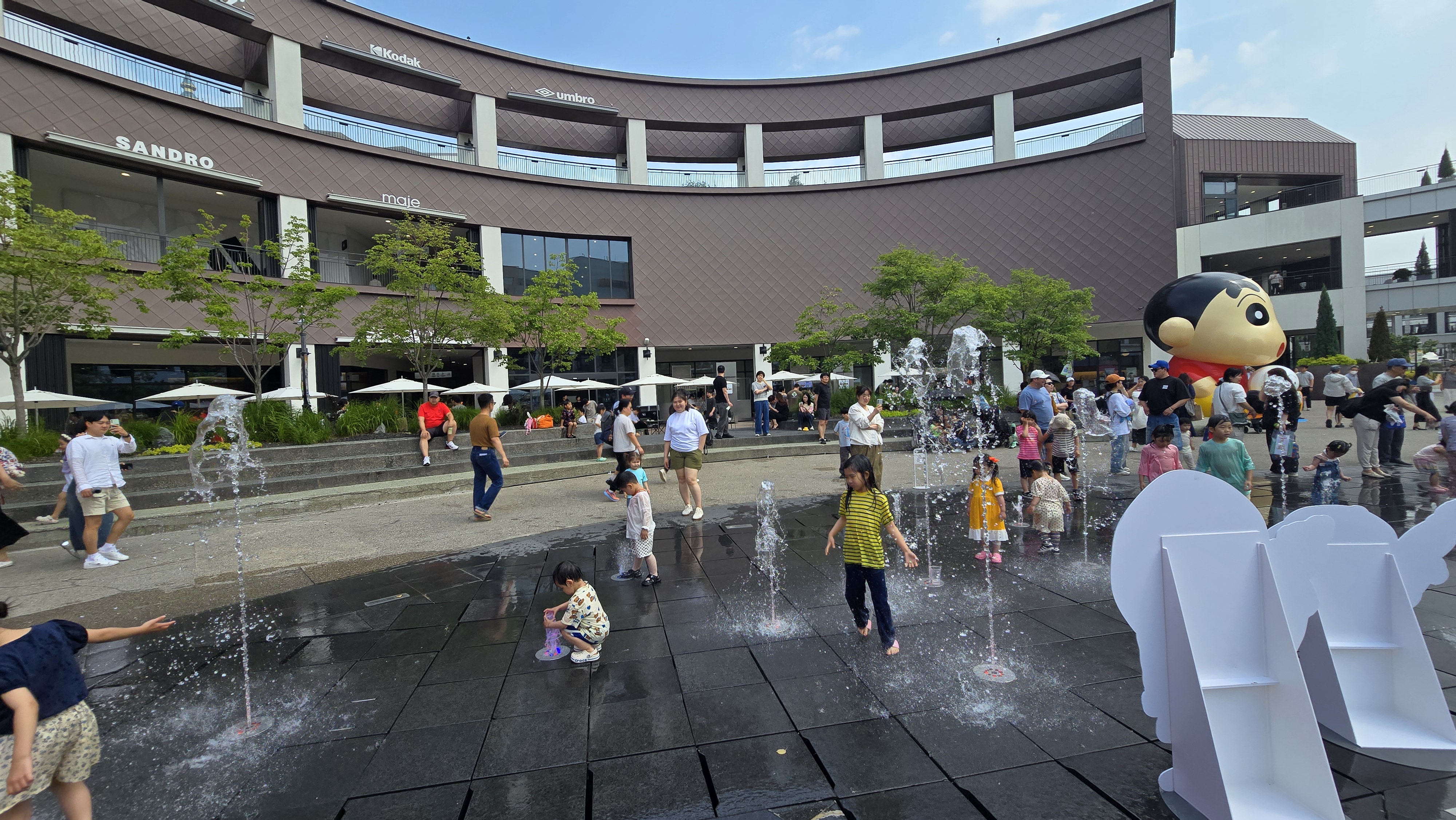 김포 현대 프리미엄 아울렛 WEST 수변광장에 마련된 짱구 테마 바닥분수 포토존