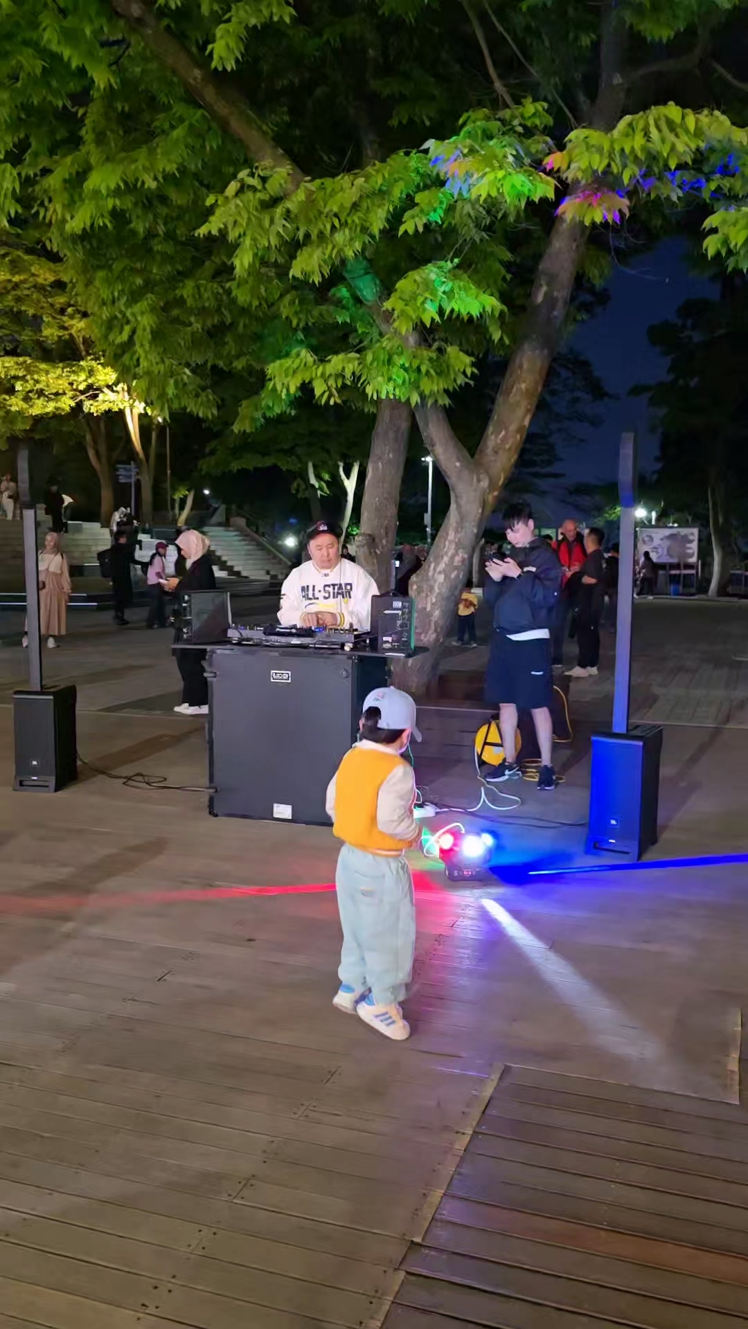 불빛이 반짝이는 가운데, 우리 아이는 갑자기 중앙으로 돌진해서 혼자 댄스 타임!